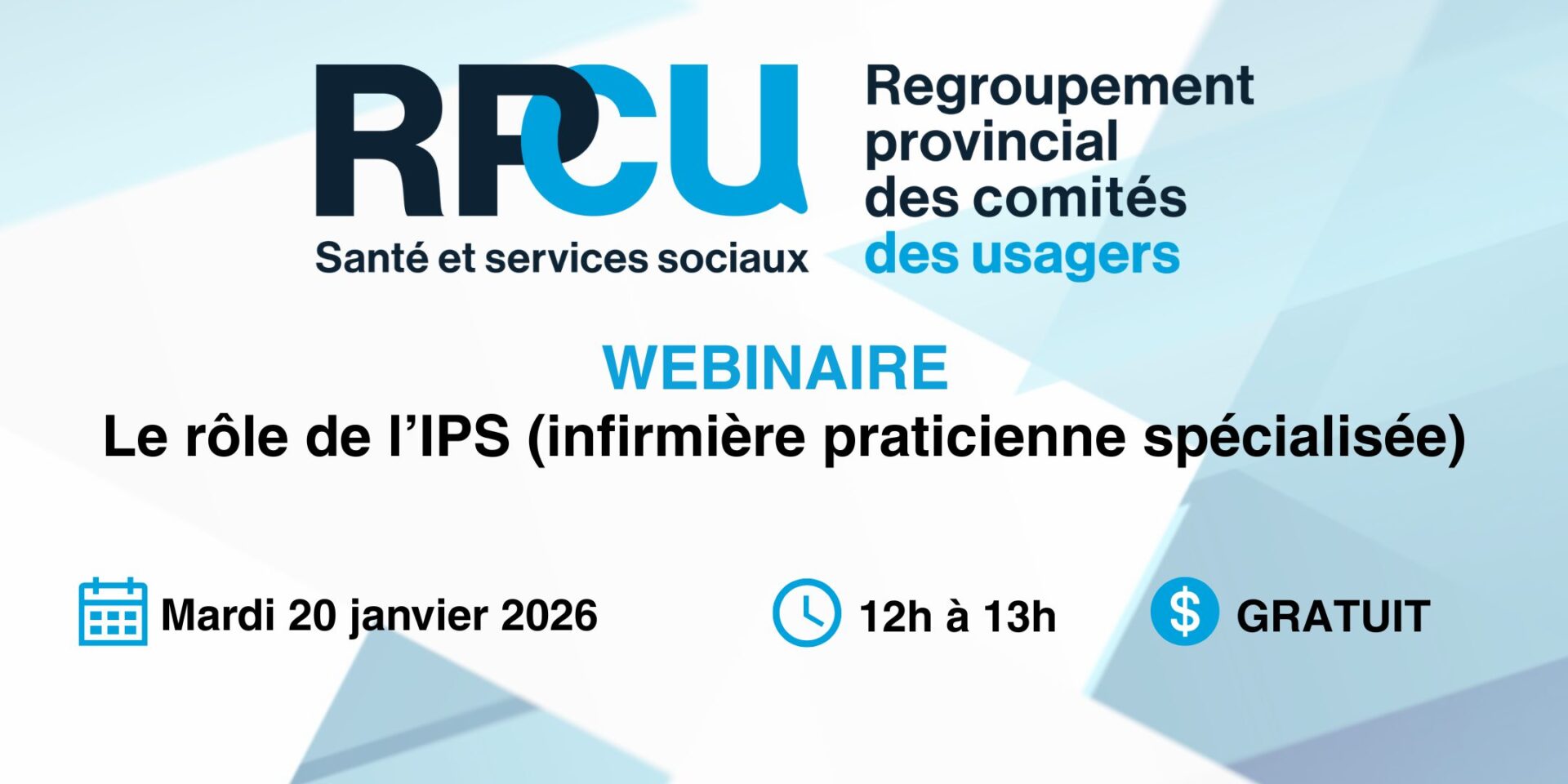 Ce webinaire présenté par l’OIIQ (Ordre des infirmières et infirmiers du Québec) vous propose d’explorer les rôles et fonctions des infirmièr(e)s praticienne spécialisée