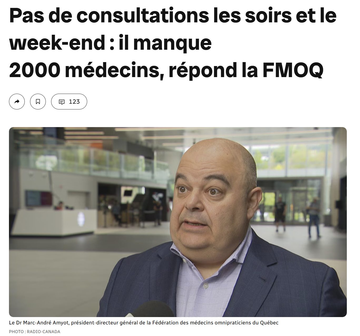 Pas de consultations les soirs et le week-end : il manque 2000 médecins, répond la FMOQ