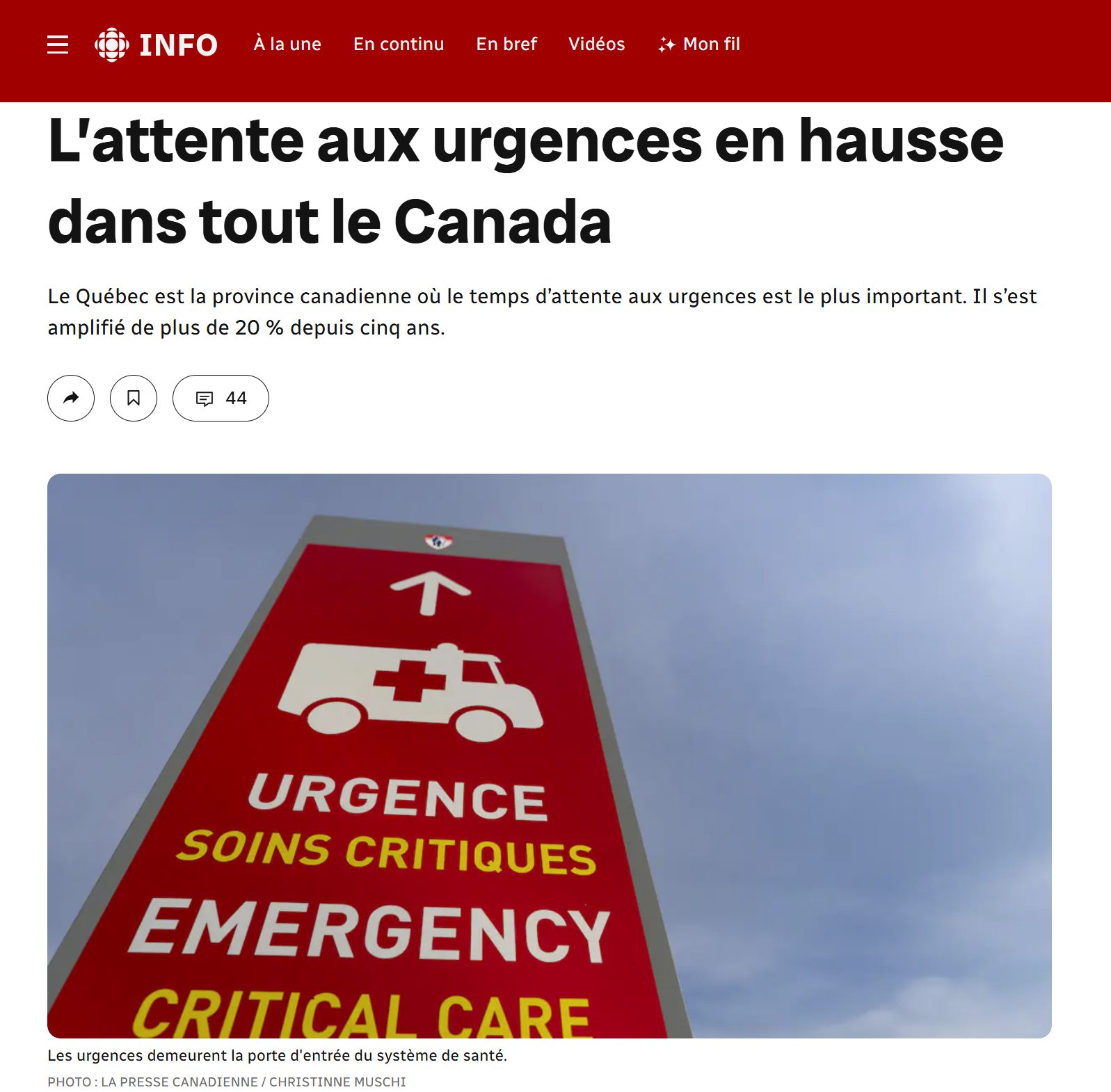 L’attente aux urgences en hausse dans tout le Canada