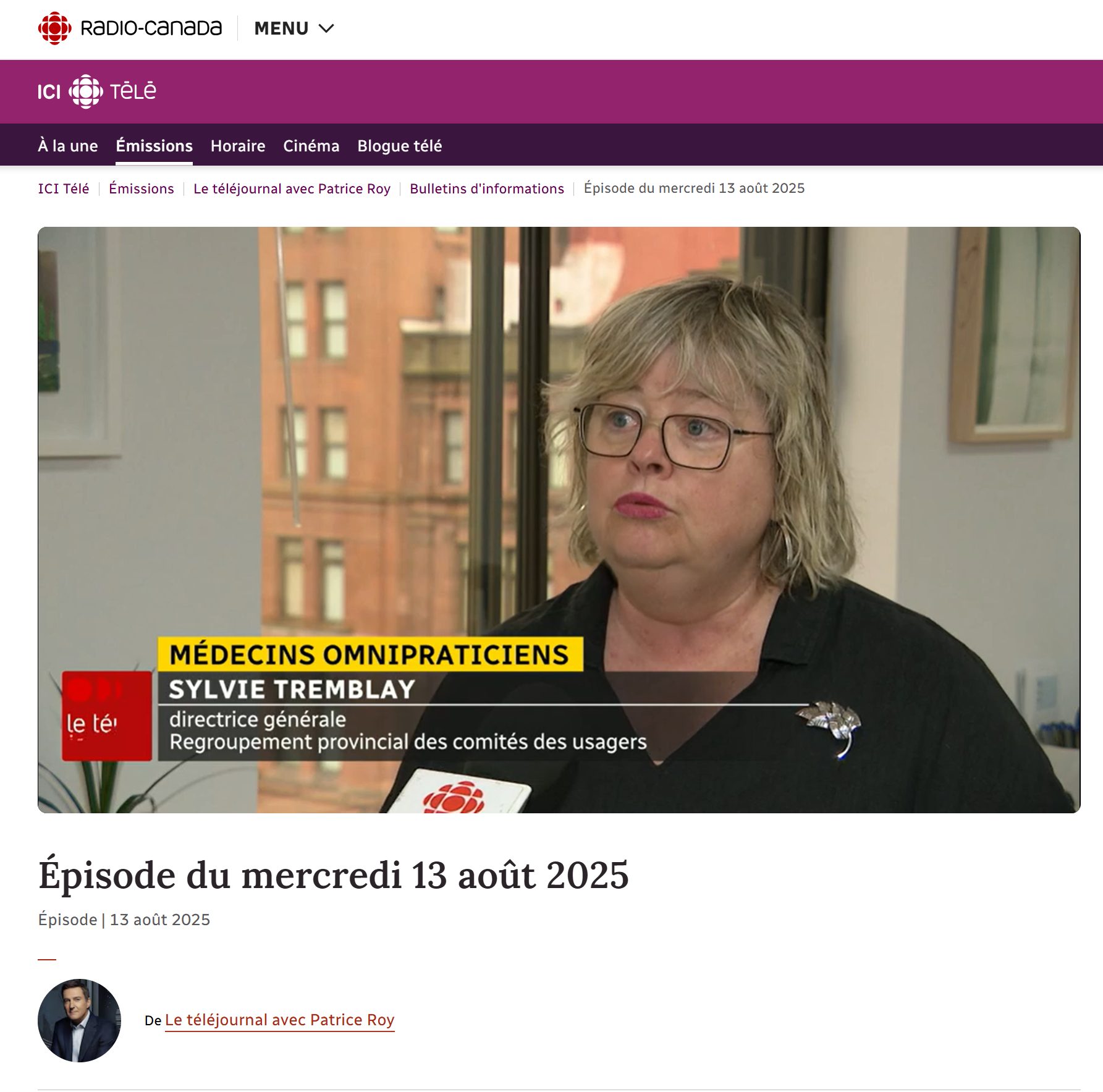 Loi 106 – RPCU au Téléjournal de Radio-Canada