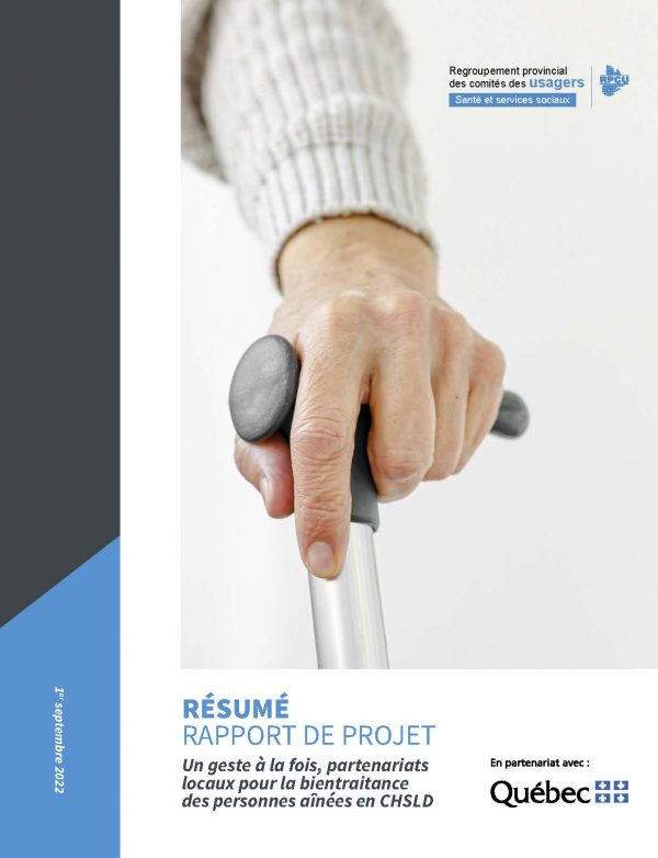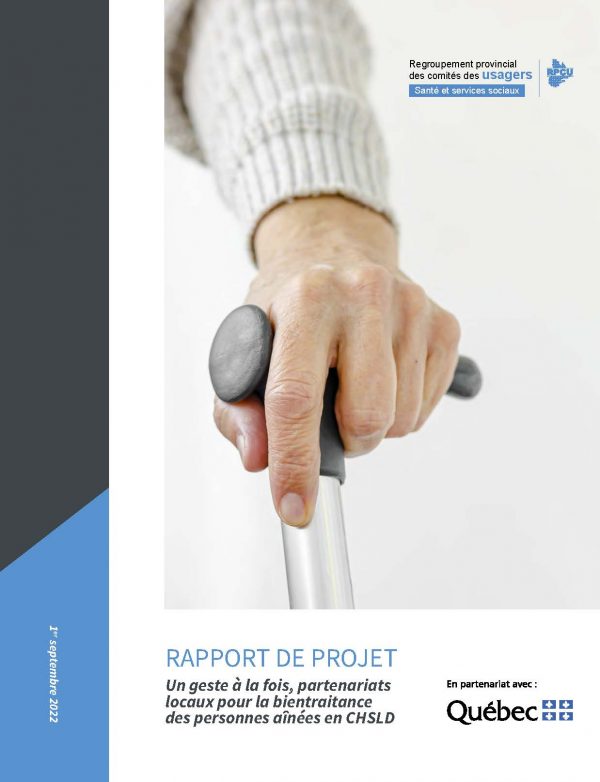 1er septembre 2022 Projet « Un geste à la fois – partenariats locaux pour la bientraitance des personnes aînées en CHSLD » Version complète