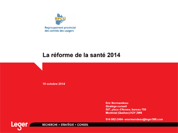10 octobre 2014 SONDAGEsur la réforme de la santé
