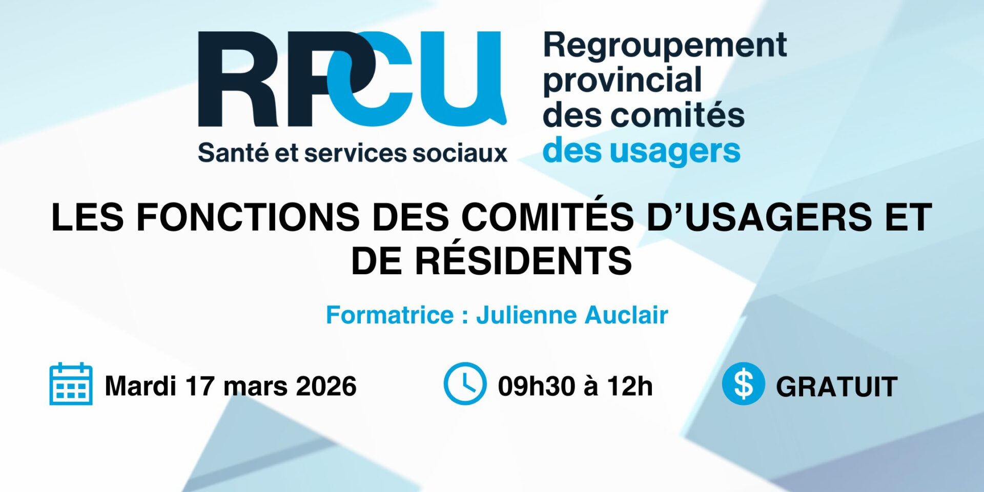 Cette formation propose d’aider les membres des comités à mieux comprendre le rôle des comités des usagers et de résidents.
