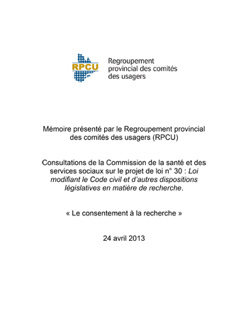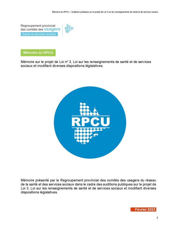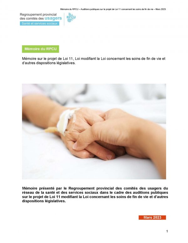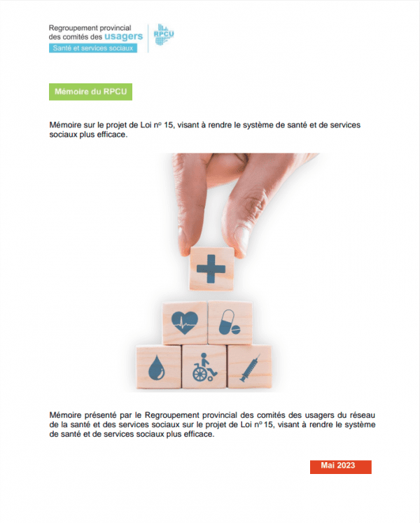 - 11 mai 2023Mémoire sur le projet de Loi no 15, Loi visant à rendre le système de santé et de services sociaux plus efficace